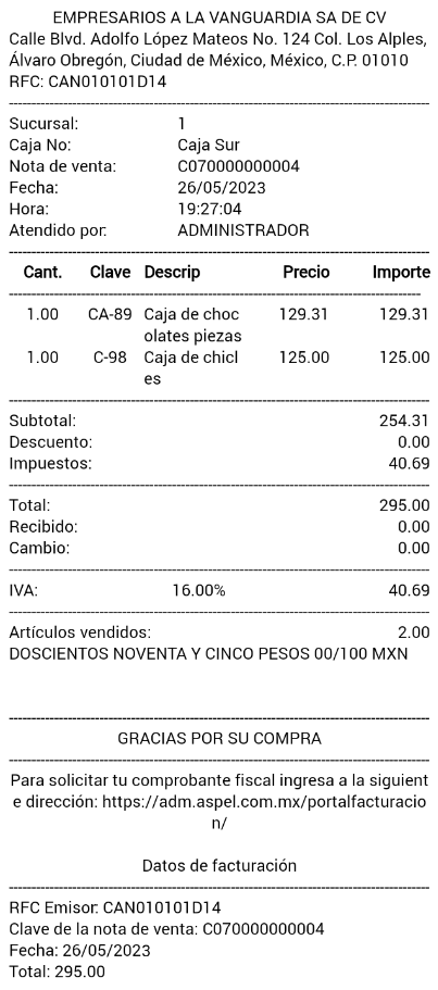 La aplicación mostrará el comprobante de pago, el cual será enviado al cliente. Para finalizar, presiona el ícono Aceptar