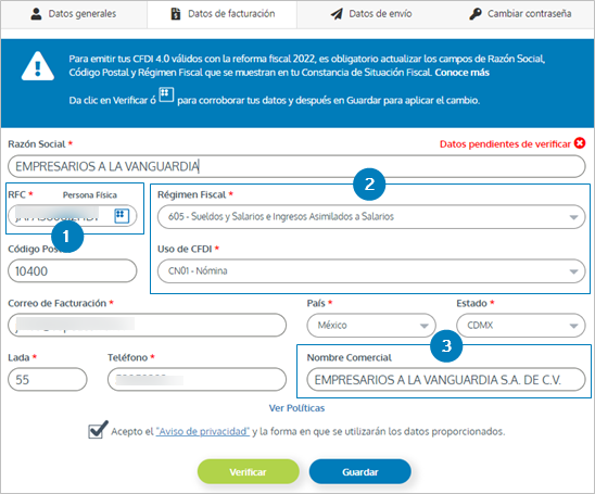 Esta información es necesaria para la expedición de tu comprobante fiscal, que ampara la compra del producto o servicio. Consulta el enlace: Validar datos fiscales – Cuenta Aspel.
